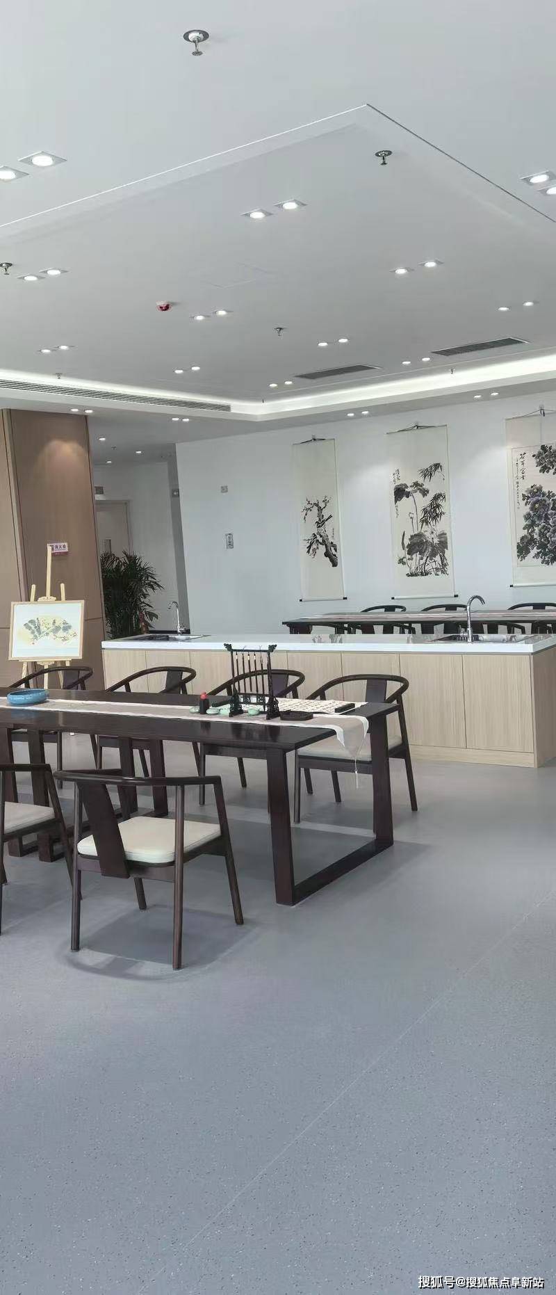 综合活动中心:2000㎡空间划分书画室、手工坊、棋牌室、影音厅等功能区,配备室外门球场、健身步道及生态农场。
