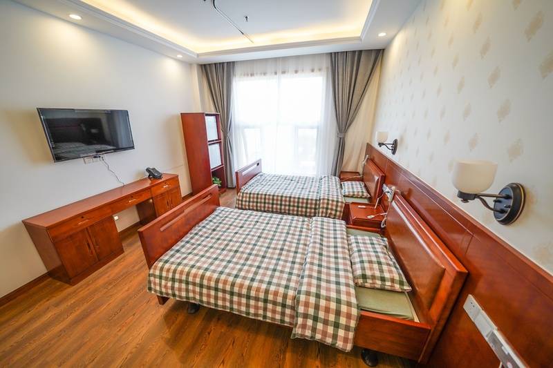 ✓ 设施配置:北京市朝阳区东坝福寿苑养老照料中心主体楼共三层,设单人间、标准间、豪华间共176个房间,房型选择多样。房间配备独立卫生间、液晶数字电视、PM2.5新风系统、智能床垫、应急呼叫系统、温湿度监测、24小时热水循环系统等全套适老化设施,兼顾舒适性与智能化。配套500平米老人休闲娱乐广场,内设自动麻将机、书法绘画区、阅览室、音乐广场、乒乓球桌、台球桌、康复健身器材等,有专业护理团队人员协助使用,保障活动安全。