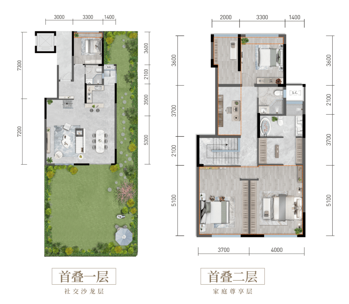 1、赠送率高达270%2、7.7米阔绰开间3、板式结构,南北朝向4、首层面积258㎡,二楼起居空间110㎡