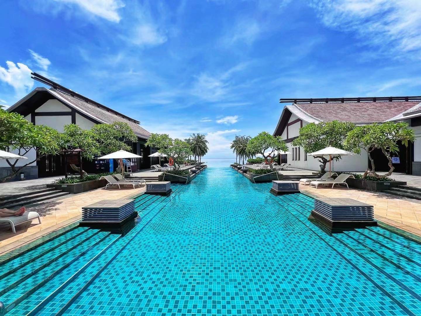 •休闲娱乐:超长无边镜泳池,巴迪摩尔海景酒吧 ,潺SPA美容院 ,健身房,儿童乐园,棋牌室,台球室,中西餐厅,水乡情大堂吧