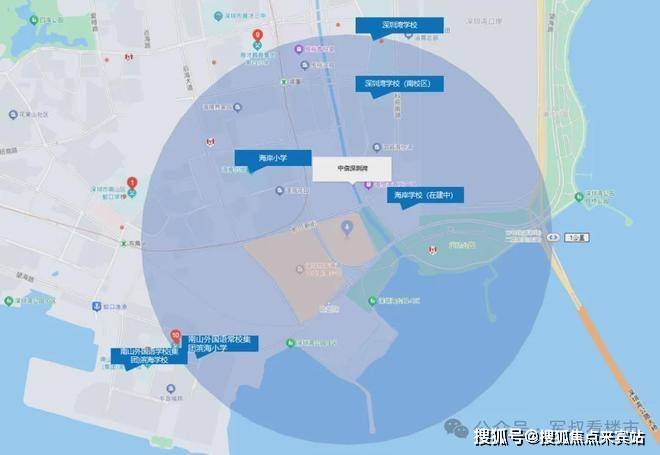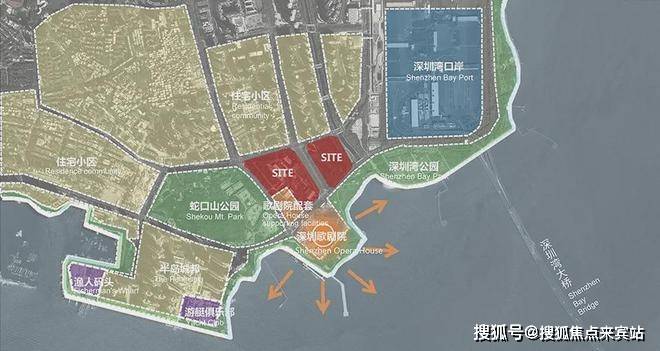北临翡翠海岸、澳城花园等豪宅小区,西倚蛇口山公园,南侧与“深圳歌剧院”一路之隔,东侧毗邻深圳湾口岸,可远眺深圳湾及香港。